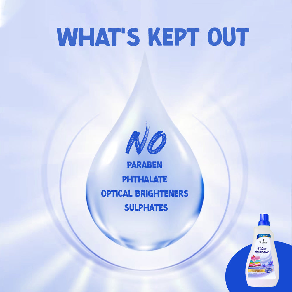 Transform your laundry with Shatras Fabric Conditioner, specially formulated to leave clothes irresistibly soft, fresh-smelling, and static-free. With just a small dose, it reduces wrinkles, protects fibers, and adds a burst of long-lasting fragrance. Safe for both bucket and machine wash, it’s the perfect finish to your laundry routine.