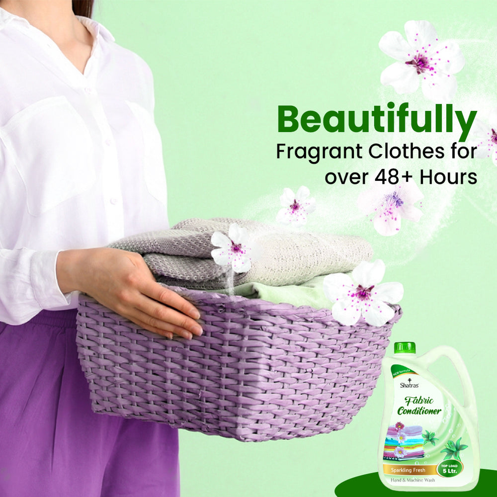 Keep your clothes irresistibly soft and wonderfully fresh with Shatras Fabric Conditioner – Sparkling Fresh. Ideal for both hand and machine wash, this 5-liter pack is designed for long-lasting use. It helps reduce wrinkles, preserve fabric strength, and leaves behind a refreshing floral scent. Just pour a capful into your washing machine’s conditioner tray and enjoy garments that feel as good as they look.