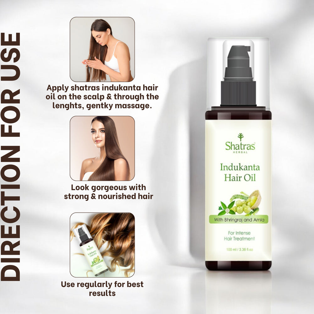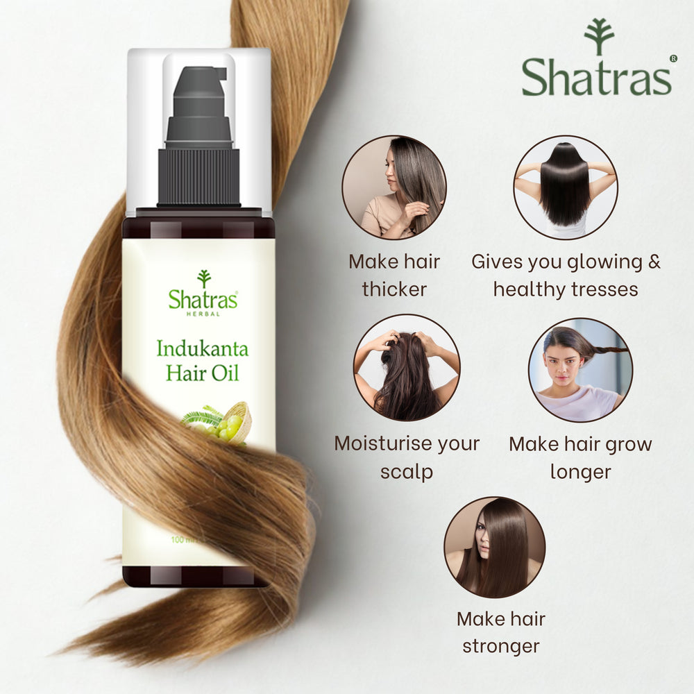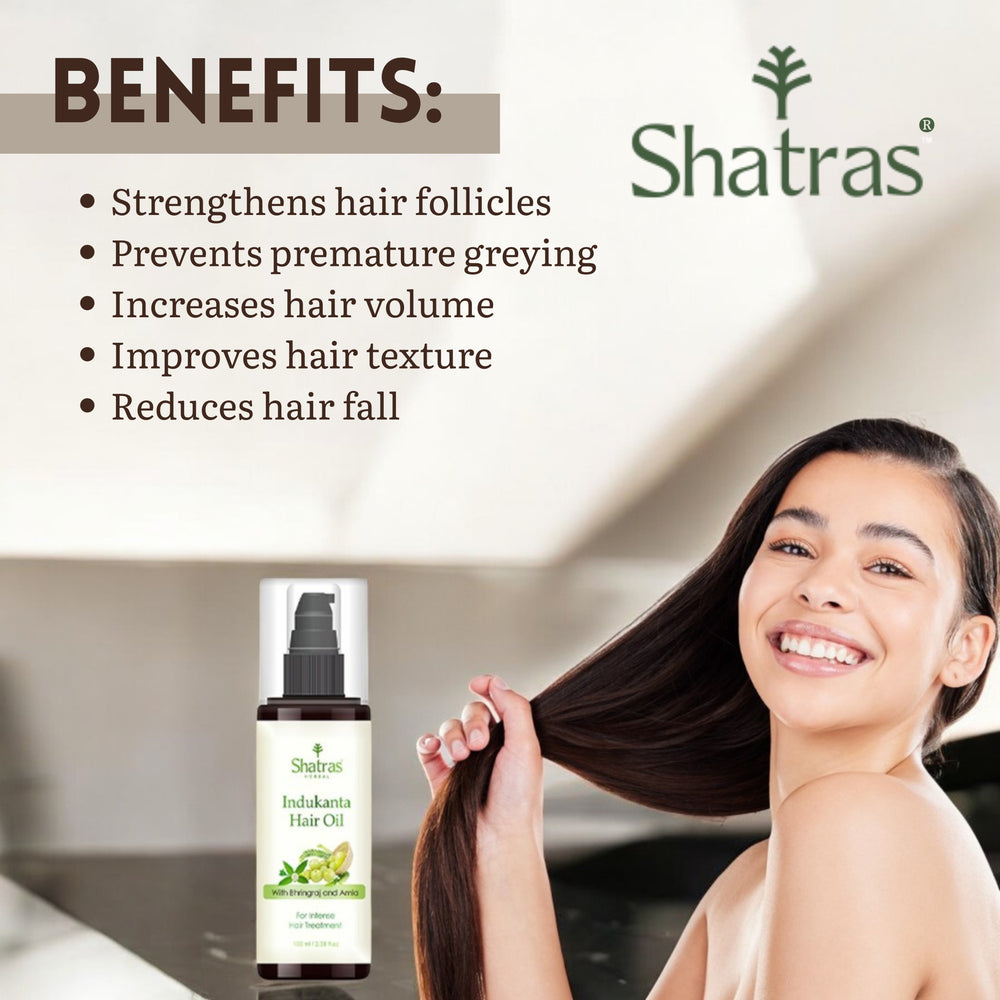 Experience the power of ancient Ayurvedic herbs with Shatras Indukanta Hair Oil. Enriched with the goodness of Bhringraj and Amla, this luxurious formula deeply nourishes your scalp and strengthens hair from root to tip. Regular use helps reduce hair fall, promotes growth, adds shine, and leaves your hair looking gorgeous and healthy. Gently massage into your scalp and lengths for best results, and embrace naturally strong, vibrant hair.