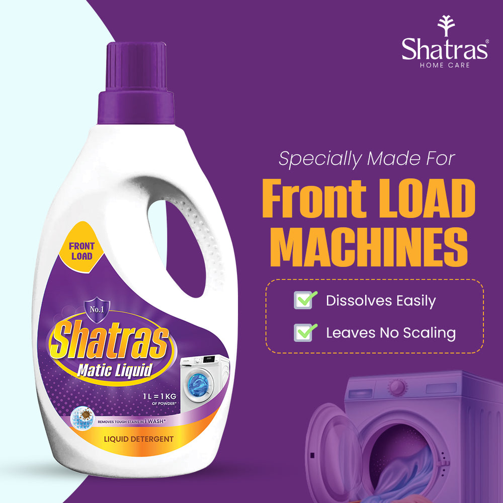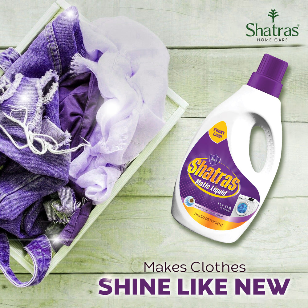 Shatras Matic Liquid is specially formulated to deliver high-quality cleaning with gentle care, making it the trusted choice for families. Free from fluorescent agents, this detergent is safe for children's delicate skin, ensuring a worry-free laundry experience. Its powerful yet mild formula keeps clothes soft, fresh, and vibrant perfect for daily washes. Recommended by moms, it's ideal for both front and top load washing machines.