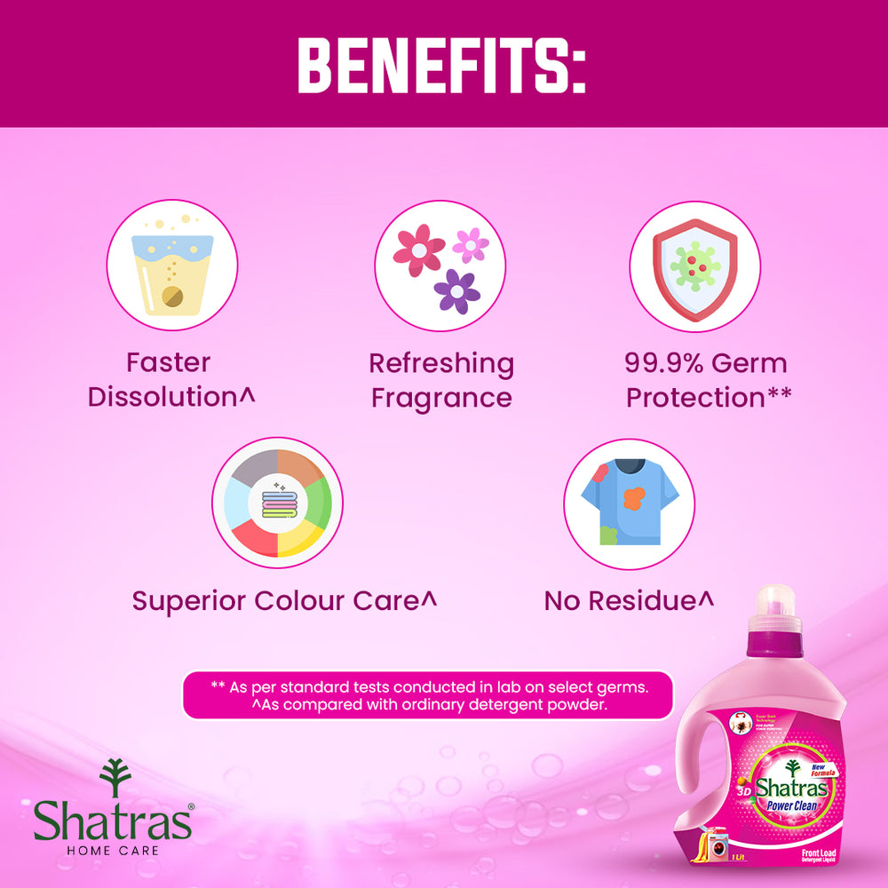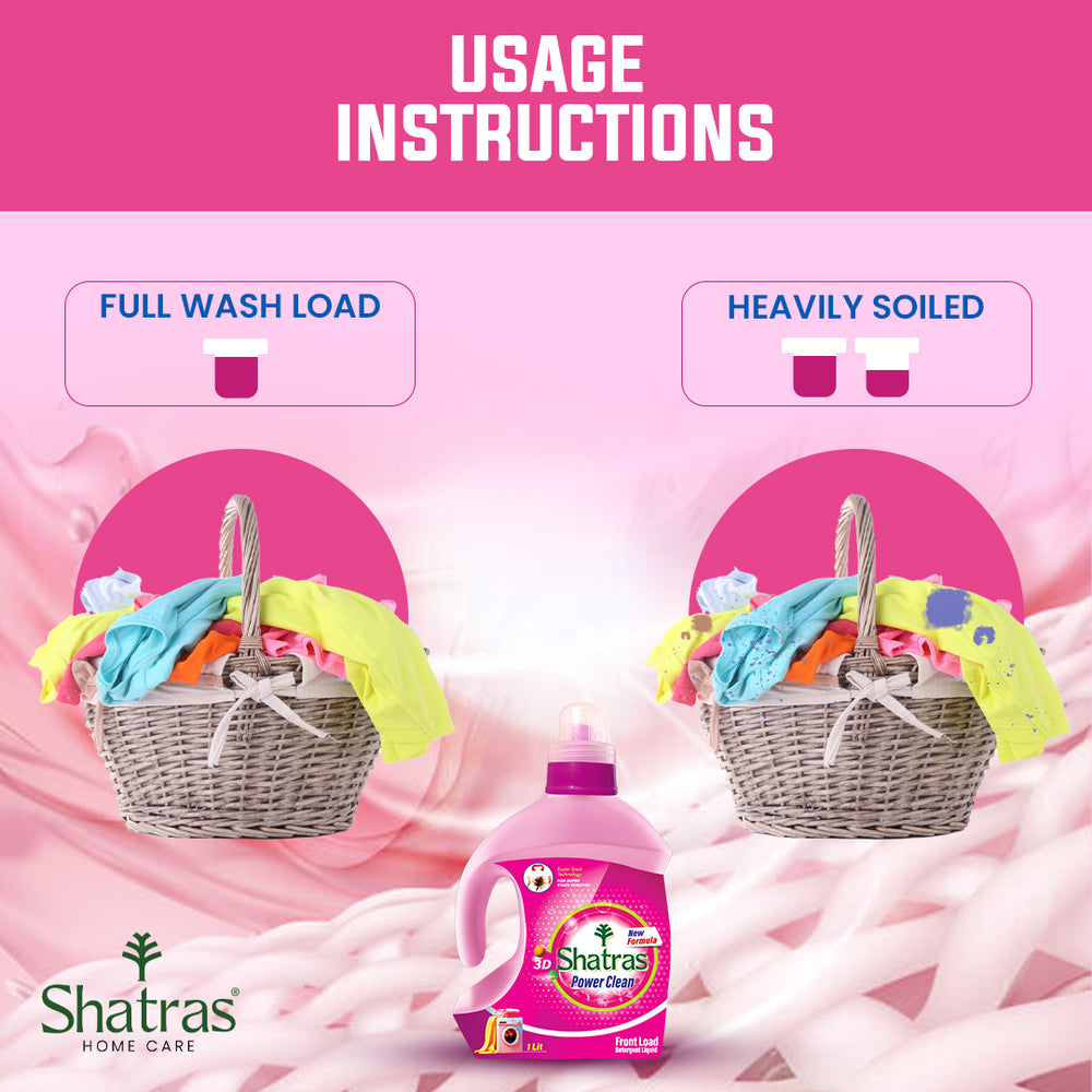 Shatras Power Clean Liquid Detergent – 1L | Easy Dosing for Full & Heavily Soiled Loads | Front Load Washing Machines