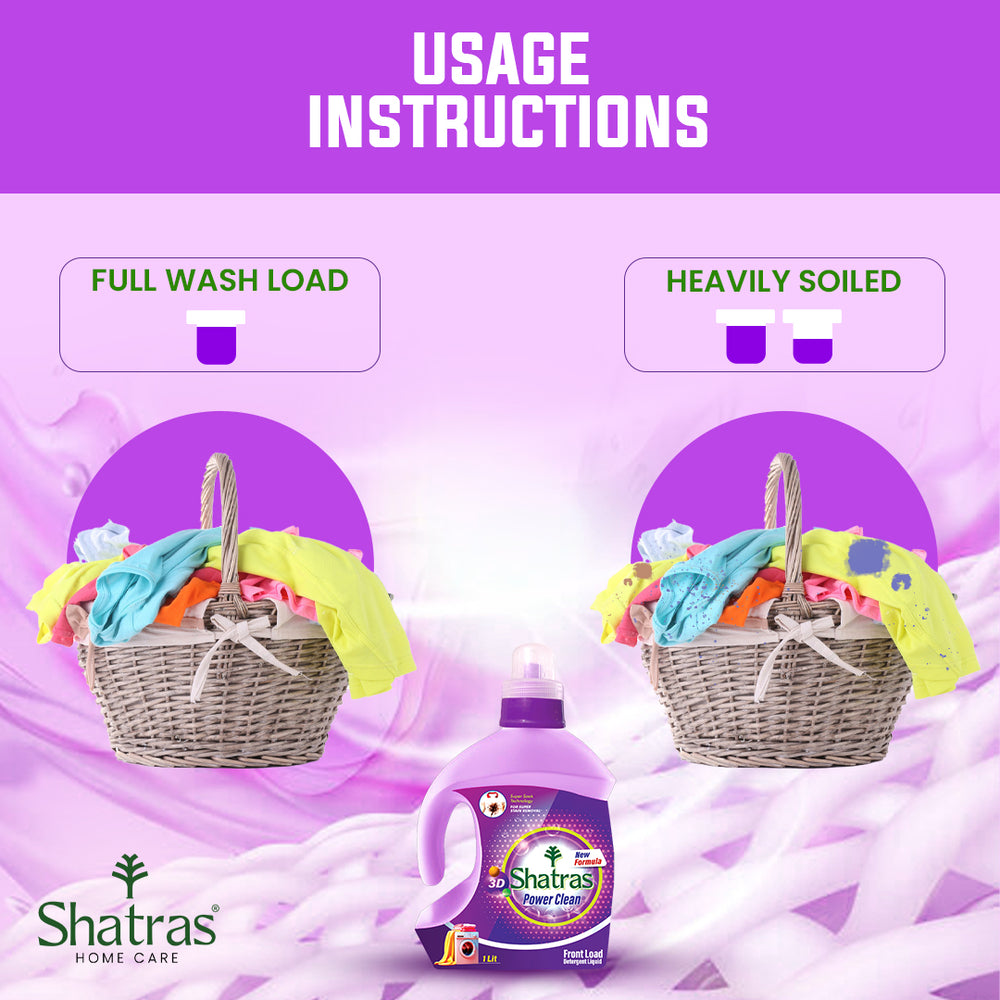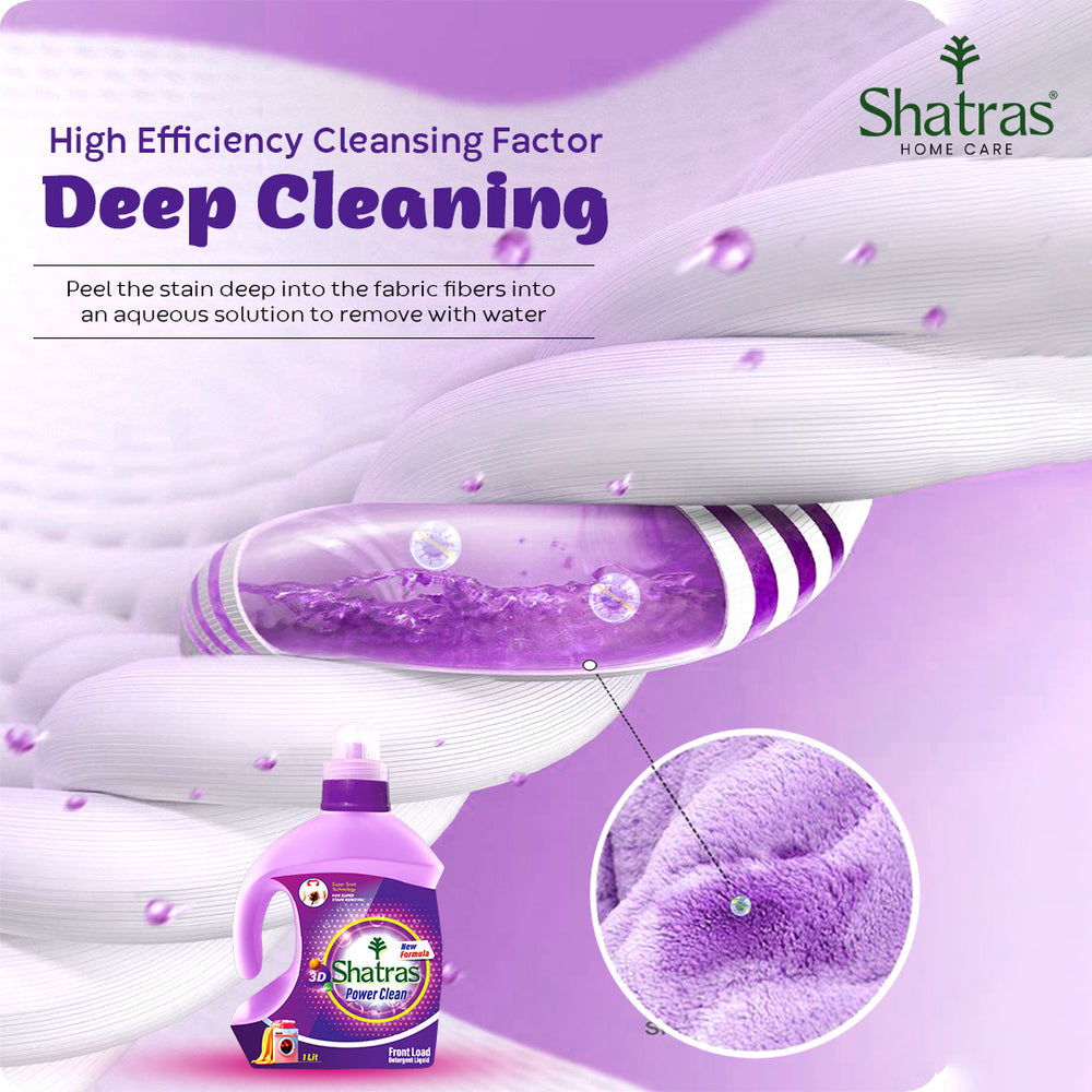 Experience powerful, safe, and effective laundry care with Shatras Power Clean Liquid Detergent – 1 Liter. Specially developed for front load washing machines, this premium formula offers 3D deep cleaning, while being gentle on fabrics and tough on stains.