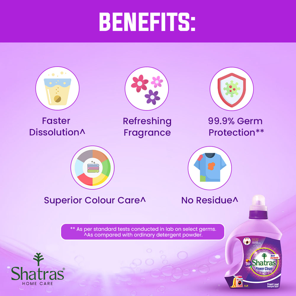 Shatras Power Clean Liquid Detergent – 1L Front Load Germ-Free Wash Vibrant Fabric Protection Deep Clean Formula
