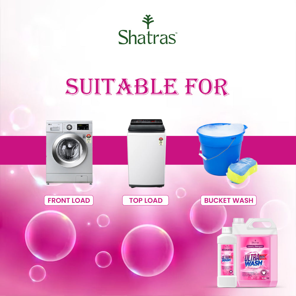Shatras Ultra Wash Liquid Detergent – 1L & 5L Combo Powerful Stain Removal with One Scoop (Pink)