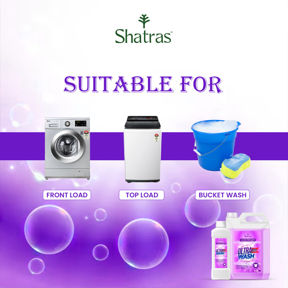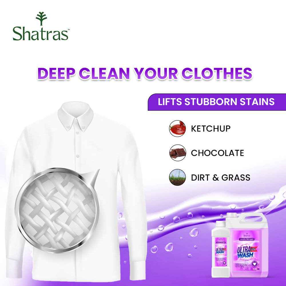 Shatras Ultra Wash Liquid Detergent – 1L & 5L Combo Powerful Stain Removal with One Scoop (Purple)