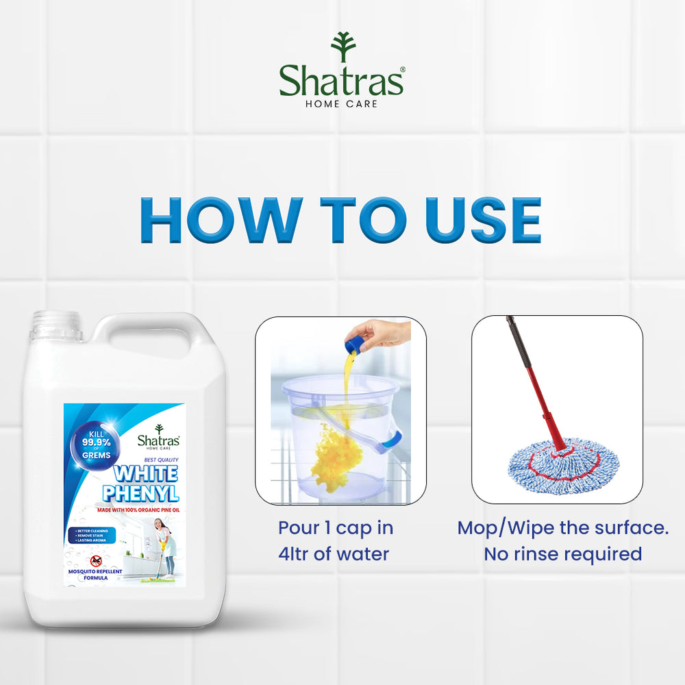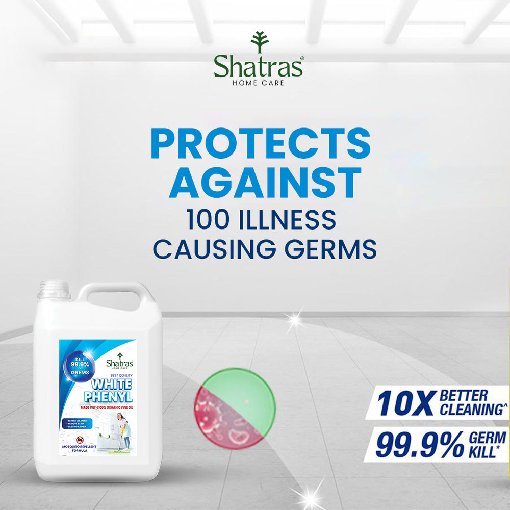 Experience deep cleaning and long-lasting freshness with Shatras White Phenyl, enriched with natural pine oil and an advanced disinfectant formula. It kills 99.9% of germs, removes stubborn stains, and leaves every surface spotless and hygienic. Perfect for homes, hospitals, and commercial spaces alike.